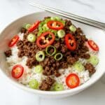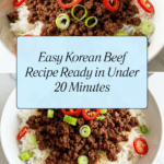 Keywords: Korean beef recipe, ground beef Korean style, easy Korean dinner, quick Korean ground beef, sesame oil beef, soy sauce beef
