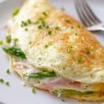 This fluffy, soufflé-style egg white omelette is a light and elegant breakfast or brunch option. Filled with tender asparagus, savory prosciutto, and sharp pecorino, it offers a perfect balance of flavors without the heaviness of whole eggs.