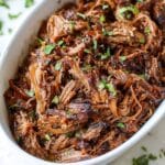 - Cooking time may vary based on your slow cooker model; the meat is done when it easily shreds with a fork.