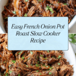 Keywords: French Onion Pot Roast, slow cooker roast, chuck roast recipe, onion soup pot roast, easy beef dinner