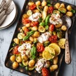 This vibrant gnocchi traybake combines crispy roasted gnocchi with tender courgettes, sweet baby plum tomatoes, and aromatic artichokes. Infused with garlic, chili flakes, and brightened by lemony ricotta and fresh basil, it creates a delightful, creamy, and zesty vegetarian meal that’s easy to prepare and perfect for a cozy dinner.
