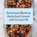 Keywords: granola, blueberry granola, buckwheat granola, coconut oil granola, healthy breakfast, gluten free snack, homemade granola