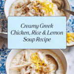 Keywords: Greek chicken soup, Avgolemono, lemon chicken soup, chicken and rice soup, creamy chicken soup, traditional Greek soup, lemon egg soup