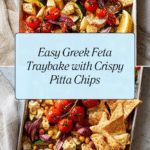 Keywords: Greek feta traybake, baked vegetables, feta cheese, pitta chips, Mediterranean recipe, vegetarian dinner