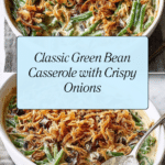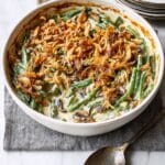 Keywords: green bean casserole, classic side dish, mushroom casserole, holiday side, crispy onion topping