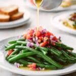 - Step 5: To serve, arrange the green beans on a plate. Top with diced tomato and red onion, drizzle with the dressing, and sprinkle with chopped parsley if desired.
