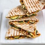 This grilled courgette, bean, and cheese quesadilla is a delicious and satisfying dish perfect for a quick lunch or dinner. Packed with flavorful ingredients and melted cheddar, it’s a great way to enjoy a vegetarian meal with a smoky, spicy twist.
