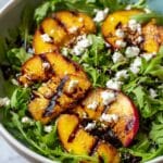 This Grilled Peach and Arugula Salad combines juicy, smoky grilled peaches with peppery arugula, creamy feta cheese, and crunchy toasted almonds for a refreshing and flavorful summer dish. Finished with a simple balsamic vinaigrette, it’s an easy and elegant salad perfect as a light lunch or side.