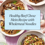 This Healthy Beef Chow Mein is a flavorful and nutritious twist on the classic Chinese stir-fry noodle dish. Made with wholemeal noodles, lean fillet steak, and a variety of fresh vegetables like mushrooms, beansprouts, and spring onions, it’s a balanced meal packed with protein and fiber. The dish is seasoned with tamari and brown rice vinegar for a tangy, savory flavor, making it a perfect quick and healthy weeknight dinner.