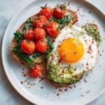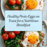 This healthy pesto eggs on toast recipe is a vibrant and nourishing breakfast or brunch option. With fresh homemade pesto, perfectly cooked eggs, and tender wilted spinach, it’s a flavorful way to start your day.