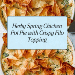 Keywords: spring chicken pot pie, filo pastry pot pie, herby chicken recipe, easy chicken dinner, comfort food, healthy pot pie