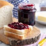 - The knob of butter helps reduce scum for a clearer jam but is optional.