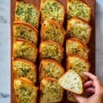 Keywords: garlic bread, parmesan garlic bread, easy side dish, Italian bread recipe, baked garlic bread, parsley garlic butter