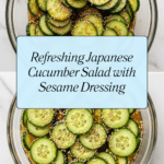 A refreshing and crisp Japanese Cucumber Salad featuring thinly sliced English cucumber marinated in a tangy mixture of rice vinegar, soy sauce, and sesame oil, garnished with toasted white sesame seeds. Perfect as a light appetizer or side dish, this easy-to-make salad balances savory, sweet, and nutty flavors with a delightful crunch.