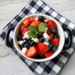 A refreshing and colorful July 4th Fruit Salsa combining fresh strawberries, blueberries, pearl mozzarella balls, and mint. This easy-to-make dish offers a delightful mix of sweet fruit and creamy cheese with a hint of freshness from mint, perfect for summer gatherings or as a light snack.
