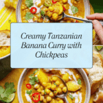 Lerato’s Tanzanian banana curry is a vibrant and comforting dish featuring green bananas simmered in a rich coconut milk and spice-infused tomato sauce. This hearty curry combines aromatic ingredients like ginger, garlic, cardamom, and turmeric with chickpeas for protein, offering a unique East African twist perfect for a satisfying vegetarian meal.