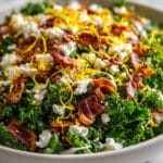 Liz’s Roasted Broccoli Salad is a flavorful and hearty dish that combines roasted broccoli, crispy bacon, caramelized shallots, tangy feta cheese, and homemade sourdough croutons. Finished with fresh lemon zest, lemon juice, and grated garlic, this salad is perfect served hot, cold, or at room temperature for a versatile side or light meal.