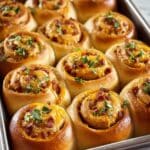 - Arrange rolls: Grease a 9×13 inch baking dish and place rolls cut-side up, close but not squashed.