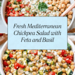 A vibrant and healthy Mediterranean Chickpea Salad featuring garbanzo beans, fresh vegetables, crumbled feta cheese, and a flavorful balsamic dressing. Perfect as a refreshing side dish or a light meal, this salad is easy to prepare and packed with wholesome ingredients.