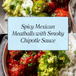 These delicious Mexican Meatballs combine a blend of ground beef and pork with vibrant spices like chipotle, cumin, and coriander. Baked until golden and then simmered in a smoky chipotle tomato sauce, they’re perfect served over rice or tucked into tortillas with fresh toppings like sour cream, guacamole, and shredded cheese.