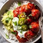 These delicious Mexican Meatballs combine a blend of ground beef and pork with vibrant spices like chipotle, cumin, and coriander. Baked until golden and then simmered in a smoky chipotle tomato sauce, they’re perfect served over rice or tucked into tortillas with fresh toppings like sour cream, guacamole, and shredded cheese.