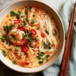 This Microwave Prawn Laksa Noodle Soup is a quick and flavorful Southeast Asian-inspired dish perfect for busy weeknights. Featuring vermicelli noodles steeped in a rich and aromatic coconut milk broth infused with laksa paste, garlic, lime, and chili, it’s topped with succulent cooked prawns and fresh coriander for a refreshing finish. Using the microwave for cooking makes this recipe incredibly convenient without sacrificing taste.