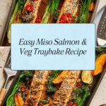 This miso salmon and vegetable traybake is a deliciously simple meal that combines sweet, savory, and umami flavors. With tender salmon, sweet potatoes, and fresh greens all cooked in one tray, it’s perfect for busy weeknights.
