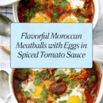 This Moroccan meatballs with eggs recipe offers a flavorful and comforting meal featuring tender lamb meatballs simmered in a spiced tomato sauce. Finished with runny eggs and fresh coriander, it’s perfect for a hearty lunch or dinner served with crusty bread.