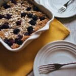 - Assemble and Top: Spread the batter evenly into the prepared baking dish. Sprinkle a little extra sugar and oats on top for added texture and scatter the remaining berries evenly over the surface.