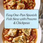 This one-pan Spanish fish stew is a vibrant and hearty dish that combines tender fish fillets, king prawns, chickpeas, and potatoes simmered in a flavorful tomato and paprika sauce. Enhanced with fresh parsley, garlic, and lemon for brightness, it’s a perfect easy-to-make meal that’s both comforting and nutritious.