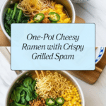 This One-Pot Cheesy Ramen is a comforting twist on a classic favorite, combining creamy melted American cheese with savory chicken-flavored broth. Topped with grilled Spam and fresh vegetables, it’s an easy and satisfying meal ready in minutes.