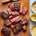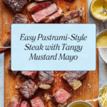 This Pastrami-style steak with mustard mayo recipe delivers a flavorful twist on classic steak dinner. Juicy sirloin or ribeye steaks are pan-seared to perfection with butter and oil, then served alongside browned sauerkraut cooked in the steak’s savory juices. A tangy mustard-mayo sauce complements the dish, making it hearty and delicious with a nod to pastrami flavors.