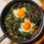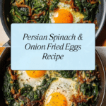 Persian spinach and onion fried eggs, known as nargesi-e esfenaj, is a simple yet flavorful dish that combines tender spinach, caramelized onions, and perfectly cooked eggs. This savory breakfast or light meal is brightened with a touch of saffron and served with fresh lemon or lime for a delightful balance.