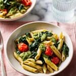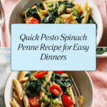 This pesto spinach penne is a vibrant, healthy dish perfect for a quick lunch or dinner. Packed with fresh spinach and cherry tomatoes, it’s a delicious way to enjoy wholemeal pasta with a flavorful vegetarian basil pesto.