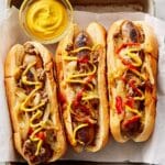 This classic Philly cheesesteak recipe features thinly sliced rib-eye steak cooked with caramelized onions and peppers, topped with melted cheeses, and served on soft sub rolls. A perfect combination of savory, tender meat and flavorful veggies makes this sandwich a beloved American favorite.