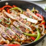 This Pork Fajitas recipe features tender marinated pork chops cooked with colorful bell peppers and onions, seasoned with fajita spices and a tangy lime-garlic butter sauce. Quick and easy to prepare on the stovetop, these fajitas are perfect for a flavorful weeknight dinner served with fresh cilantro garnish.