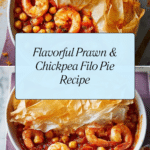This Prawn, Pepper & Chickpea Filo Pie is a vibrant, flavorful dish combining succulent prawns, hearty chickpeas, and sweet roasted peppers enveloped in crisp, golden filo pastry. Infused with fragrant harissa and tomato purée, it offers a delightful balance of spice and richness, perfect for a comforting yet light meal.