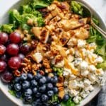 This vibrant Rainbow Chicken Salad combines tender sautéed chicken breast with fresh grapes, blueberries, crunchy almonds, and tangy feta cheese, all tossed with a creamy almond honey mustard dressing. It’s a colorful, flavorful, and nutritious salad perfect for a light lunch or dinner.