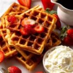 Deliciously crisp and fluffy homemade waffles with a rich buttery flavor, perfect for breakfast or brunch. This easy-to-make recipe yields waffles with a golden crust and soft interior, enhanced by a hint of vanilla and served with classic toppings like maple syrup, fresh fruit, and powdered sugar.
