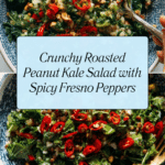 This Roasted Peanut Kale Crunch Salad is a vibrant and flavorful mix of finely chopped greens, crunchy peanuts, and a zesty peanut vinaigrette. It combines fresh herbs, a hint of spice from fresno peppers, and a tangy dressing that brings everything together for a satisfying, healthy meal or side dish.