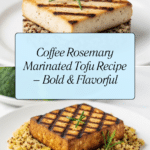 This Rosemary Coffee Marinated Tofu recipe features extra firm tofu marinated in a rich blend of coffee, fresh rosemary, garlic, brown sugar, salt, and black pepper. Baked until tender and then finished on a grill or in a pan for a lightly browned, flavorful dish perfect for a savory vegan meal.