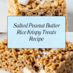 These Salted Peanut Butter Rice Krispy Treats combine the classic gooey marshmallow base with creamy peanut butter and a sprinkle of flaky salt for a perfect balance of sweet and salty. Crispy rice cereal adds the ideal crunch to these irresistibly chewy dessert bars, making them a fun and easy treat to enjoy anytime.