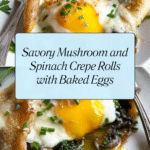 Delicious savory crepe rolls filled with a flavorful mixture of sautéed baby bella mushrooms, shallots, fresh herbs, and wilted spinach, topped with crumbled feta, parmesan, and baked eggs. This recipe combines the delicate texture of crepes with a rich, cheesy, and herbaceous filling, finished perfectly with runny baked eggs for an impressive yet approachable dish.