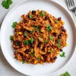 This chicken pairs well with tortillas, rice, or quinoa. You can also serve it with a side of avocado, sour cream, or shredded cheese for a complete meal.