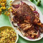 This slow roast ras el hanout lamb with couscous is a flavorful, aromatic dish featuring a tender shoulder of lamb slow-cooked with a fragrant North African spice blend. Paired with fluffy couscous, raisins, chickpeas, fresh herbs, and preserved lemon, this recipe delivers a hearty and spiced meal perfect for sharing.