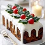 Snow-topped holly cakes are a festive, richly spiced fruitcake featuring a luscious blend of dried fruits, nuts, and warming spices, topped with marzipan and a sweet fondant icing decorated with holly sprigs and glace cherries. Perfect for holiday celebrations, this traditional cake is soaked with rum, brandy, or orange juice for deep flavor and has a moist, dense texture that keeps well.