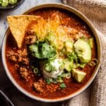 - Serve with Toppings: Ladle the chili into bowls and top generously with salted tortilla chips. Add dollops of yogurt, slices of avocado, chopped green onions, more cilantro if desired, and a squeeze of lime juice to brighten the flavors. Enjoy hot.