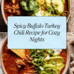This Spicy Buffalo Turkey Chili is a flavorful and hearty dish combining ground turkey with bold spices, hot sauce, and enchilada sauce, simmered to perfection and topped with cheddar cheese, fresh cilantro, and crunchy tortilla chips. It’s a comforting yet spicy meal perfect for chilly days or game day gatherings.