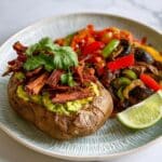- Finish the Sweet Potatoes: Carefully halve the baked sweet potatoes almost all the way through, creating jackets, and transfer them to serving plates. Top each potato with the chopped or mashed avocado and squeeze over some lime wedges for added brightness. Divide the bean and vegetable mixture evenly over the plates.