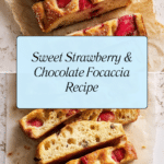 This strawberry and chocolate focaccia is a delightful twist on a classic Italian bread. Combining the rich bitterness of dark chocolate with the fresh sweetness of strawberries creates a unique treat that’s perfect for dessert or a special snack.